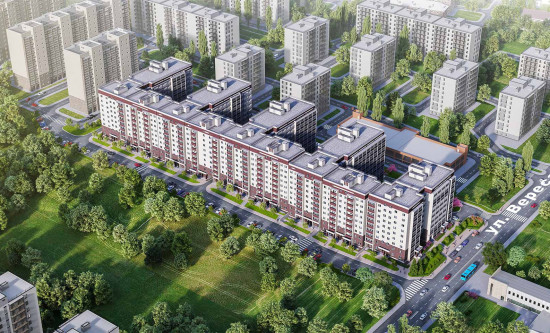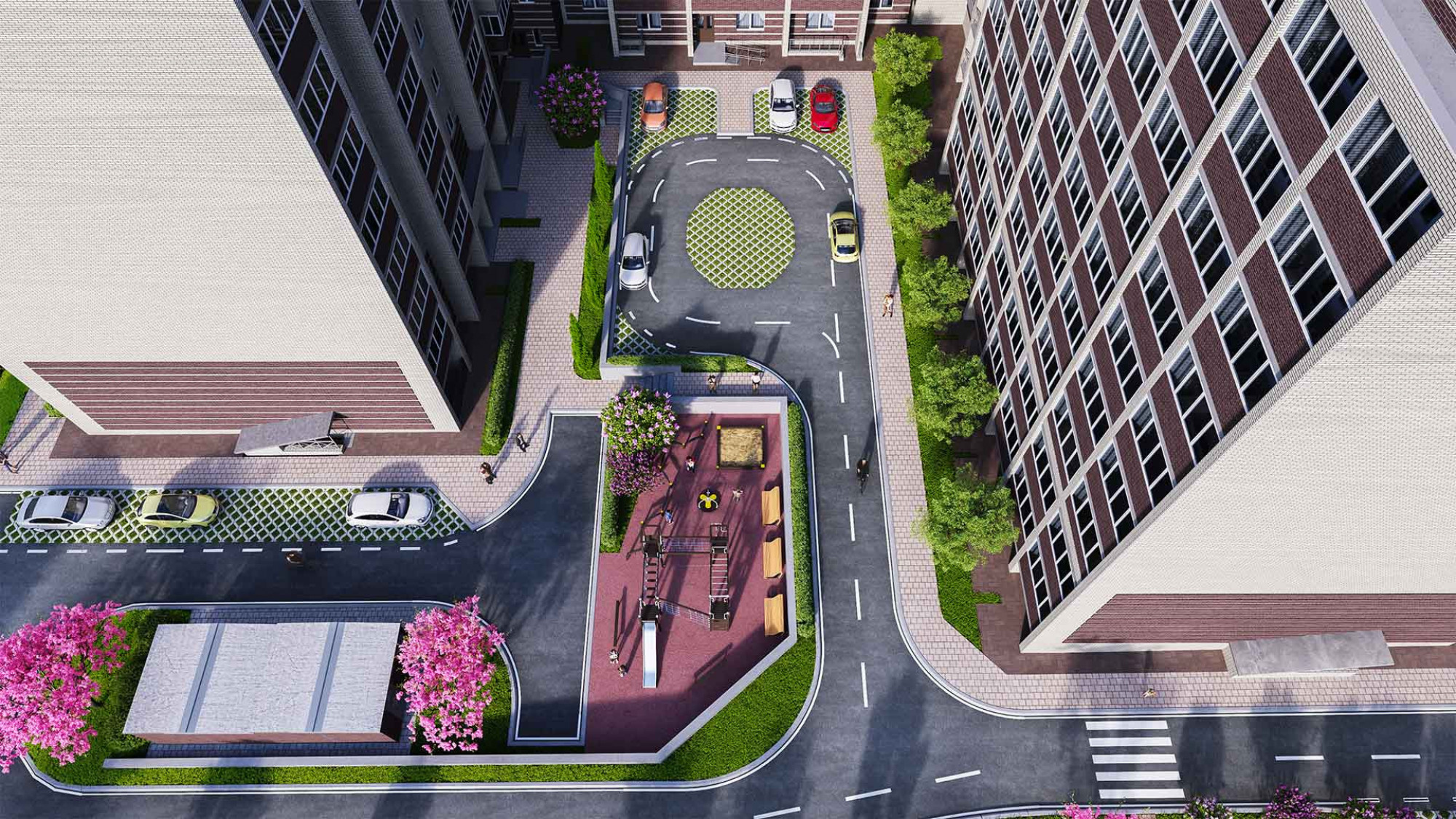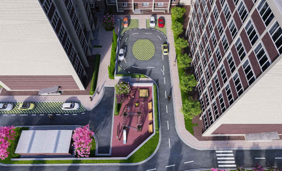 транспортная развязка, магазины, места отдыха и развлечений, парковые зоны.